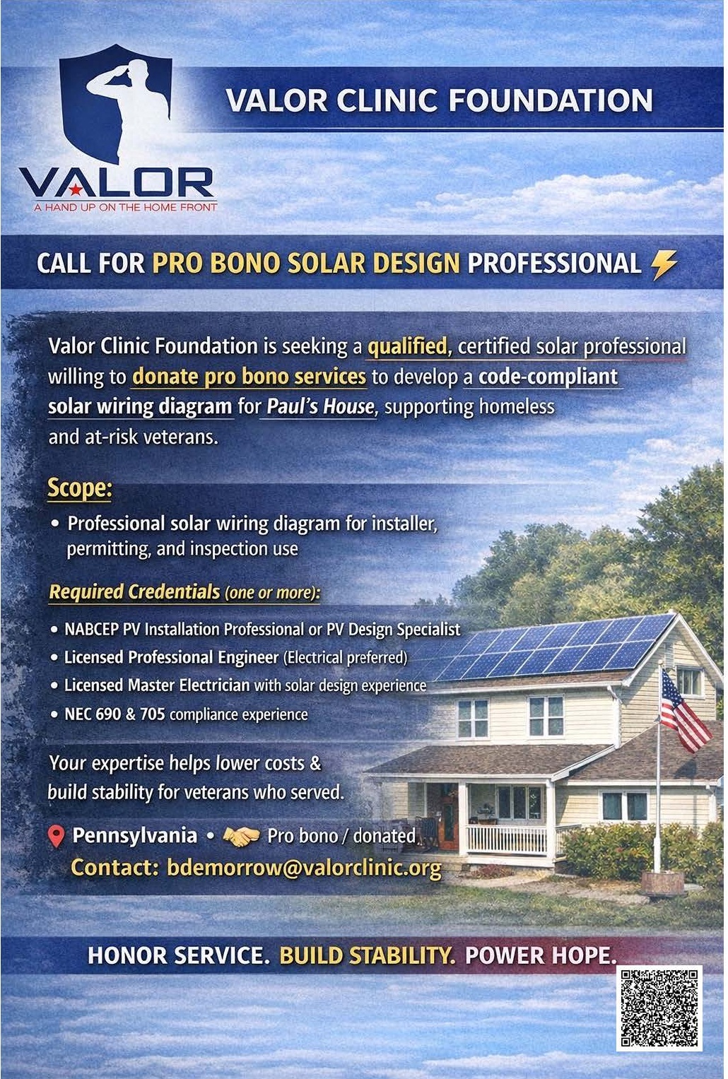 VALOR Clinic Foundation - Call For PRO BONO Solar Design Professional
