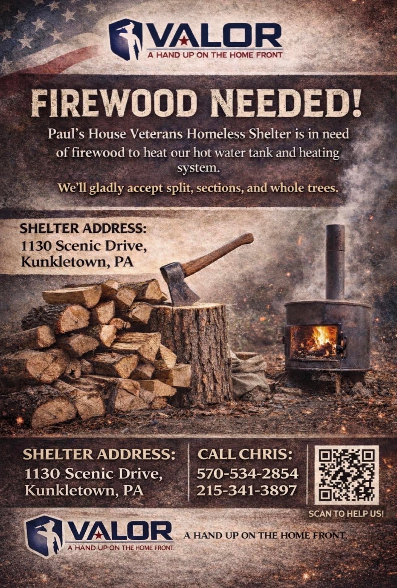 If you are able to donate firewood or volunteer your time, please contact us or scan the QR Code.