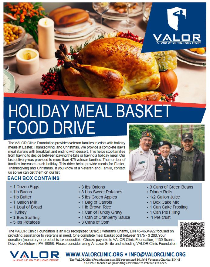 Due to the incredible generosity our community has shown in supporting our Holiday Meal Program, we now have more families to serve than ever before. Thanks to your commitment to Veterans, VALOR was able to provide 61,860 meals for 2,060 struggling Veterans and their families during the holidays of 2025. This also means we need caring Volunteers to help pack and deliver these holiday meal boxes to local families who are counting on us.